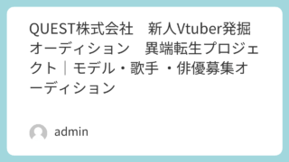 その他 QUEST株式会社 新人Vtuber発掘オーディション 異端転生プロジェクト|モデル・歌手 ・俳優募集オーディション 【QUEST株式会社 新人Vtuber発掘オーディション 異端転生プロジェクト】締切日:2025年12月31日の詳細情報。応募資格・募集要項・審査の流れ・応募方法を徹底解説。モデル・歌手・俳優など幅広く募集しています。 その他