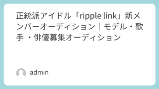 【正統派アイドル「ripple link」新メンバーオーディション】締切日:2026年1月10日の詳細情報。応募資格・募集要項・審査の流れ・応募方法を徹底解説。モデル・歌手・俳優など幅広く募集しています。