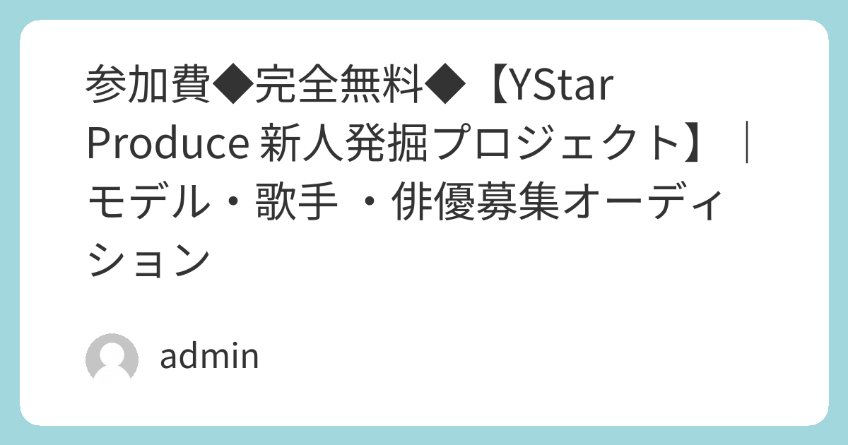 【参加費◆完全無料◆【YStar Produce 新人発掘プロジェクト】】締切日:2025年12月31日の詳細情報。応募資格・募集要項・審査の流れ・応募方法を徹底解説。モデル・歌手・俳優など幅広く募集しています。