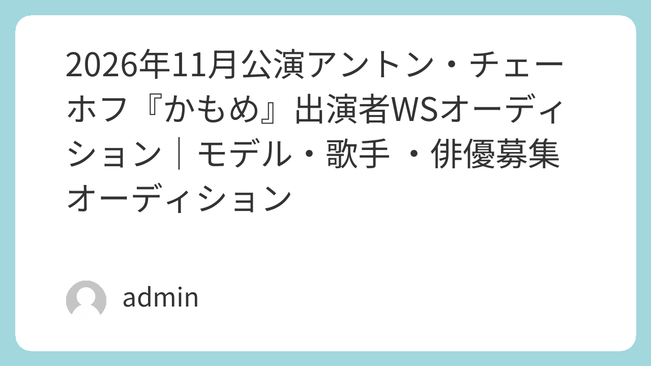 | 募集内容 | 概要】 Compagnie de théâtre Lilasでは、2026年11月に上演予定のアントン・チェーホフ『かもめ』に出演してくださる方を探す、ワークショップ型オーディションを開催します。 本ワークショップは、 が目的です。 ただ読むだけでは立ち上がらない戯曲を、俳優の身体・声・呼吸によって立ち上げていく。 「オーディションは緊張する」「自分に合うか不安」そんな方にも、まずは体験として参加していただければと思います。 ※選考を前提としていますが、ワークショップのみの参加も歓迎しています。 【おすすめな方】 【内容】 【使用テキスト】 【日時】 【参加条件】 【参加費】 【場所】 【応募フォーム】 【Lilasとは】 Lilasでは、演劇公演と並行してスピンオフ小説を執筆し、朗読を行います。戯曲の世界をより深く提示することで、作品を楽しんでいただくのが狙いです。 また、戯曲に合わせた主題歌をアーティストとコラボして製作。演劇と歌の力で、お客さまの心に残る作品を創作します。 演劇×朗読×音楽 【お問い合わせ】 |
