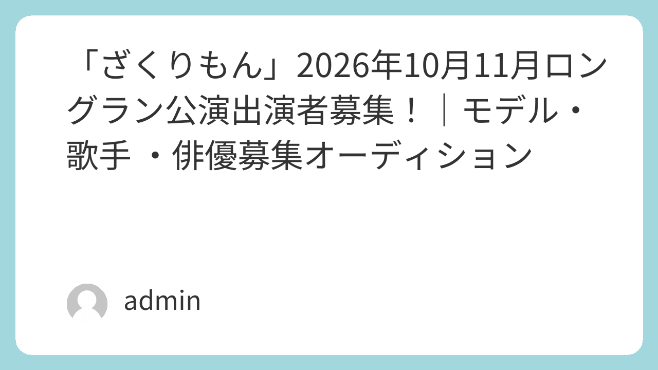 「ざ☆くりもん」2026年10月11月ロングラン公演出演者募集!|モデル・歌手 ・俳優募集オーディション