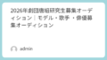 | 募集内容 | 【情熱のある個性的な俳優を募集】 出演者は全員女性です。 20年の実績を誇るLIVEDOGによる、一般的に言うガールズ演劇・アイドル公演とは全く違った、本当の演劇・本当の芝居づくりを一流のスタッフ陣と稽古を通じて追求し、「職業・俳優」として将来闘っていきたい人材を育成する企画。 演劇ユニット「SUGARBOY」主宰で、ミュージカル「青春-AOHARU-鉄道」(脚本・演出)、超ハジケステージ☆ボボボーボ・ボーボボ(脚本・総合演出)、等の舞台の他、TVドラマやラジオの放送作家としても活躍する川尻恵太による脚本を、人気舞台「HUNTER×HUNTER THE STAGE 2」のノブナガ役、『進撃の巨人 -the Musical-』のハンネス役 等、舞台や映画等で活躍する俳優の村田充が演出を担当し、人気ダンスユニット「梅棒」の塩野拓矢によるダンス振付で作品を華やかに彩られた、笑って泣ける青春コメディ作品「TOARU(トアル)2026」を、2026年7月、中目黒キンケロ・シアターにて18ステージを上演するにあたり、技術や経験よりも、大きな夢と情熱を持った、個性豊かでパワーみなぎる女性キャストを募集する。 チケットノルマ無し!アンサンブル(セリフの無い役)での出演は一切無し! <公演概要> <稽古> <選考方法> |