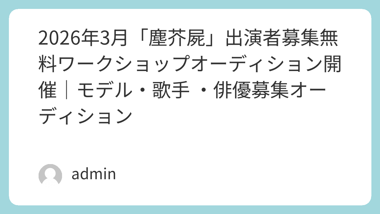 応募資格 | 男女│18歳~45歳│経験者のみ, 無料│以下のすべてを満たす方を対象といたします。 ・18歳以上の心身ともに健康な方。 ・舞台演劇に関わっている方、現在専門教育を受けている方。 または音楽・ダンス・朗読など、人前でのパフォーマンスに携わっている方。 ・2026年1月13日以降の稽古スケジュール、本番スケジュール含む劇場滞在期間の2026年3月16日〜22日を確保できる方 ・所属団体・事務所がある方は、所属先の許可を得てご参加ください。 ※稽古参加日程などスジュールについては、合否の連絡後に相談となります。 ※ワークショップのみ参加の方には、上記条件は該当しません。 |