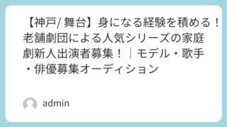 舞台 【神戸/ 舞台】身になる経験を積める!老舗劇団による人気シリーズの家庭劇★新人出演者募集!|モデル・歌手 ・俳優募集オーディション 【【神戸/ 舞台】身になる経験を積める!老舗劇団による人気シリーズの家庭劇★新人出演者募集!】締切日:2025年11月25日の詳細情報。応募資格・募集要項・審査の流れ・応募方法を徹底解説。モデル・歌手・俳優など幅広く募集しています。 舞台