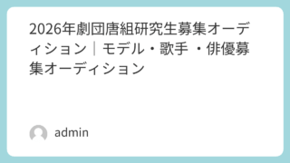 舞台 2026年劇団唐組研究生募集オーディション|モデル・歌手 ・俳優募集オーディション 【2026年劇団唐組研究生募集オーディション】締切日:2026年2月24日の詳細情報。応募資格・募集要項・審査の流れ・応募方法を徹底解説。モデル・歌手・俳優など幅広く募集しています。 舞台
