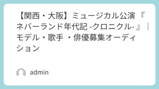 舞台 【関西・大阪】ミュージカル公演 『ネバーランド年代記 -クロニクル- 』|モデル・歌手 ・俳優募集オーディション 【タイトル】締切日:2026年月日の詳細情報。応募資格・募集要項・審査の流れ・応募方法を徹底解説。モデル・歌手・俳優など幅広く募集しています。 舞台