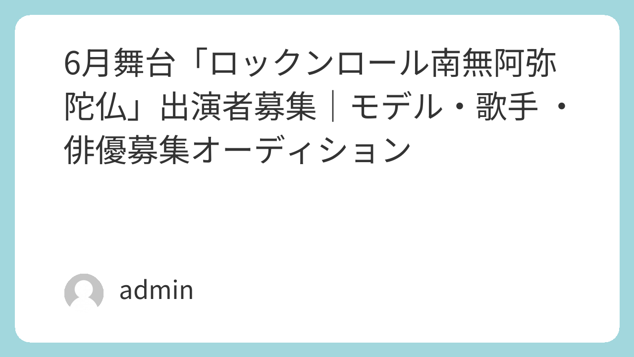 | 応募方法 | ■応募方法 件名【ロックンロール南無阿弥陀仏・出演者オーディション】と書き、以下の質問事項の回答を記入・顔写真と全身写真を各一枚添付の上、下記メールアドレス宛にご応募ください。 宛先:thkmtata@icloud.com 1. 氏名(芸名可)・ふりがな 2. 年齢・性別 3. 身長 4. 芸歴(ない場合は「なし」と記載) 5. 連絡先電話番号、メールアドレス 6. 現在やっているSNS、(各リンクもご記載ください) 7. ブロダクション所属の方は事務所名 8.プロフィール写真(顔写真と全身写真) |