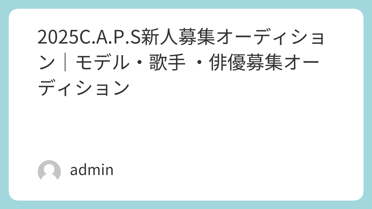 | 募集内容 | C.A.P.Sは2024年設立の芸能事務所です。所属者を募集しています。女優・俳優・声優・ナレーター等さまざまなジャンルを経験不問で募集中です。
