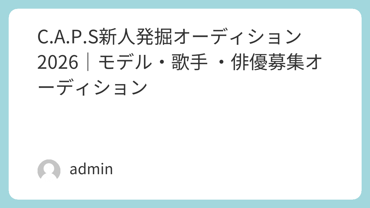 | 募集内容 | C.A.P.Sは2024年設立の芸能事務所です。所属者を募集 新しい才能を待っています。未経験でも、今はまだ自信がなくても 私たちの事務所は、あなたの個性を大切にし、一人ひとりが輝ける 経験不問で募集中です。 [ 合格後にかかる費用 ] 特になし。 |