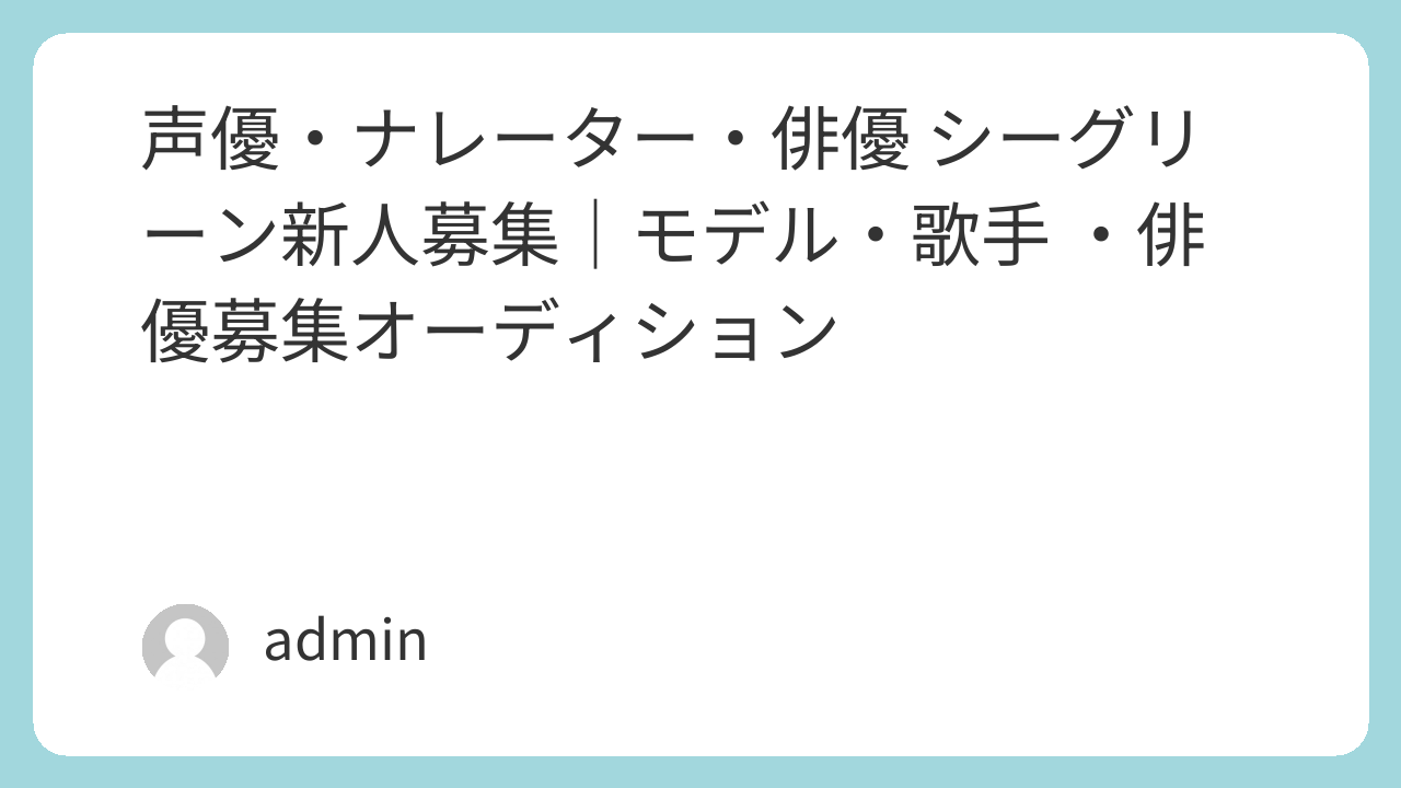 | 募集内容 | 2002年設立で23年を迎えましたプロダクション「シーグリーン」では、声優・ナレーション関連の声のお仕事も増えてきている為、(声優・ナレーター部門)を新設致しましたので、アニメーションや外国映画のセリフの吹き替え、CMのナレーションなど声のお仕事に興味のある方をはじめ、俳優・女優・子役・アイドル・モデル・歌手と幅広く新人を募集致します。 あなたの幅広い可能性を、わたしたちと一緒に成長させましょう! 応募資格:65歳以下の男女。 |