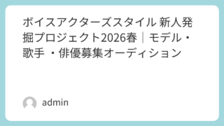 声優 ボイスアクターズスタイル 新人発掘プロジェクト2026春|モデル・歌手 ・俳優募集オーディション 【ボイスアクターズスタイル 新人発掘プロジェクト2026春】締切日:2026年5月5日の詳細情報。応募資格・募集要項・審査の流れ・応募方法を徹底解説。モデル・歌手・俳優など幅広く募集しています。 声優