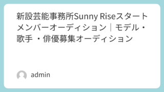 モデル・タレント 新設芸能事務所Sunny Riseスタートメンバーオーディション|モデル・歌手 ・俳優募集オーディション 【新設芸能事務所Sunny Riseスタートメンバーオーディション】締切日:2026年6月30日の詳細情報。応募資格・募集要項・審査の流れ・応募方法を徹底解説。モデル・歌手・俳優など幅広く募集しています。 モデル・タレント